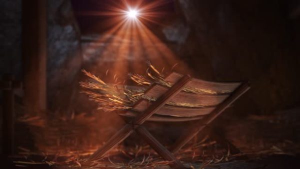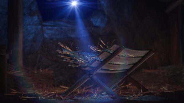 Nativity of Jesus Scene with twinkling stars of Bethlehem with sparkling advent Christmas story