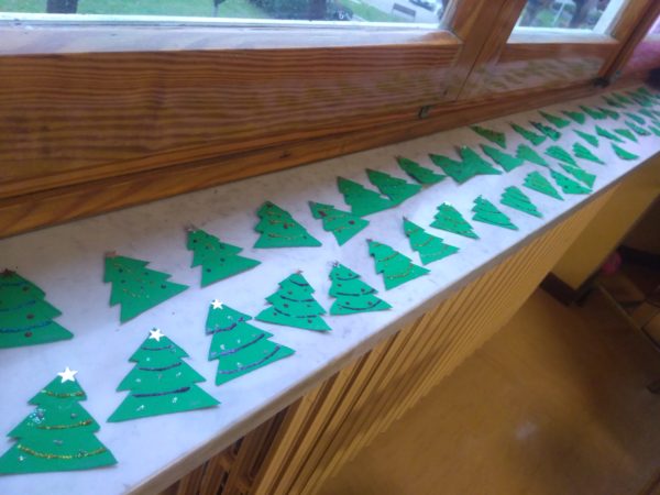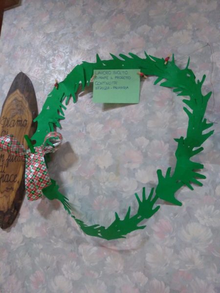 Nel pomeriggio di mercoledì 11 dicembre i bambini di 5 anni della Scuola dell’Infanzia si sono recati a far visita alla classe prima della Scuola Primaria per condividere un momento di incontro prima del periodo natalizio, secondo il calendario previsto dal progetto di continuità. Ogni bimbo, dopo essersi sistemato vicino ad un compagno più grande, è stato invitato a decorare e colorare degli alberelli di Natale che uniti in coppia avrebbero formato un simpatico accessorio per la matita. Inoltre, in collaborazione con gli alunni della classe prima, i bambini di 5 anni hanno creato una ghirlanda di Natale con i ritagli delle sagome delle loro manine. Prima di tornare in sezione con gli ottimi lavoretti, abbiamo ancora condiviso un momento di merenda insieme.