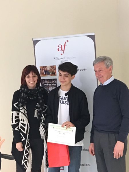 Martedì 28 marzo, l’Alliance Française di Cuneo ha consegnato i diplomi dell’esame del DELF A2 ai ragazzi che l’anno scorso hanno sostenuto tale prova. Nella nostra scuola secondaria i ragazzi hanno partecipato al livello A2 con ottimi risultati, tra cui spicca l’alunno Matteo Romano, premiato come “eccellenza” in quanto ha ottenuto un punteggio superiore al 90.