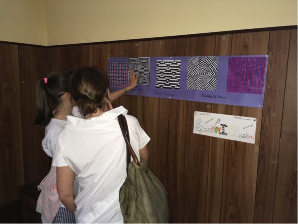 L’inaugurazione, tenutasi nel pomeriggio di giovedì 25 maggio, è stata un successo e gli alunni hanno potuto spiegare con orgoglio il significato delle loro bellissime e curiose opere, basate non solo sull’accostamento di colori e forme, ma anche su precise regole matematiche e geometriche che stanno alla base dell’Op Art!