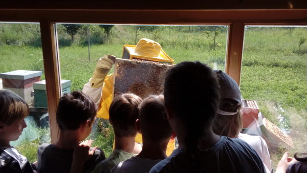 Dopo un’interessante spiegazione che ci ha permesso di avvicinarci allo strano ed affascinante mondo delle api, abbiamo visitato l’apiario; lì abbiamo visto com’è fatto un alveare, abbiamo osservato le api al lavoro e siamo anche riusciti a vedere l’ape regina deporre un uovo in una cella.