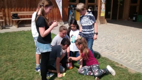 Per concludere abbiamo fatto un gioco molto divertente: una gara a squadre durante la quale abbiamo immaginato di essere delle api e di dover cercare il polline tra i fiori.
