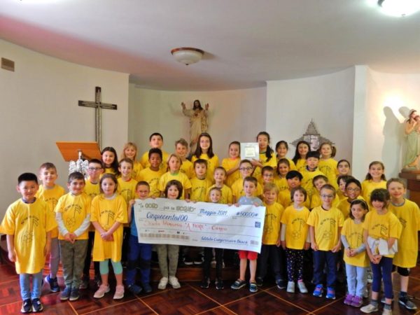 Quaranta giovani coristi dalla prima alla quarta primaria hanno interpretato il canto “Cambio di rotta”, ispirato alle parole di Papa Francesco.