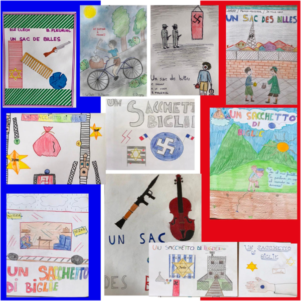 In occasione della Giornata della Memoria le classi quinte della Scuola Primaria e la classe prima della Scuola Secondaria, hanno guardato il film “Un sacchetto di biglie” che racconta il viaggio di due fratelli ebrei, Joseph e Maurice, che partono da Parigi per sfuggire ai nazisti e raggiungere il Sud della Francia, la cosiddetta “zona libera” occupata in quel momento dagli italiani. A seguito della visione, i ragazzi hanno immaginato una locandina o copertina del dvd, che potesse rappresentare al meglio la storia.