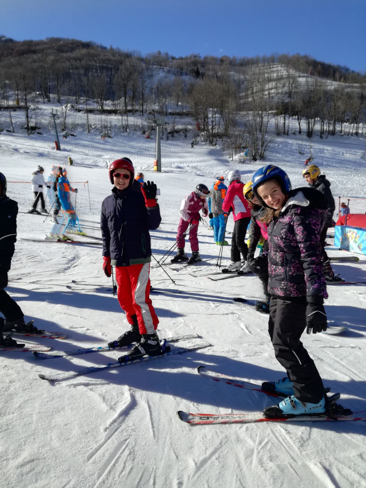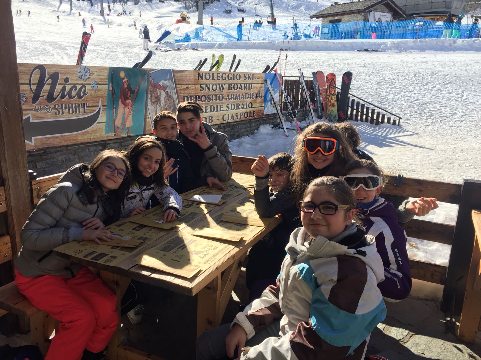 Nell’ora di pranzo i ragazzi si sono radunati presso la baita del Maneggio per mangiare pranzo tutti assieme ed una volta ricaricate le pile sono tornati al lavoro sulle piste da sci.