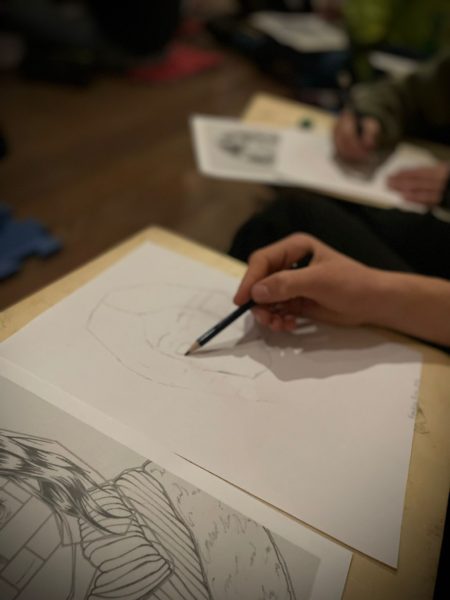 I ragazzi dopo aver ammirato le opere, hanno partecipato ad un laboratorio di disegno “ Dialoghi orientali: le fotografie di Steve McCurry incontrano l’arte dei manga.”.