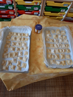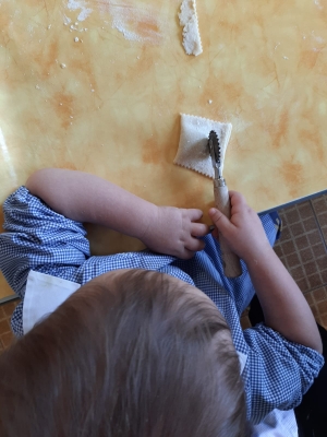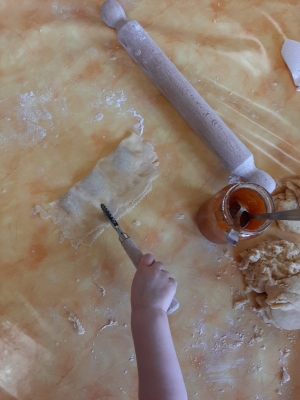 Impastando e manipolando gli ingredienti, canticchiando la canzone di carnevale, impariamo così a condividere e sperimentare in allegria nuove attività!
